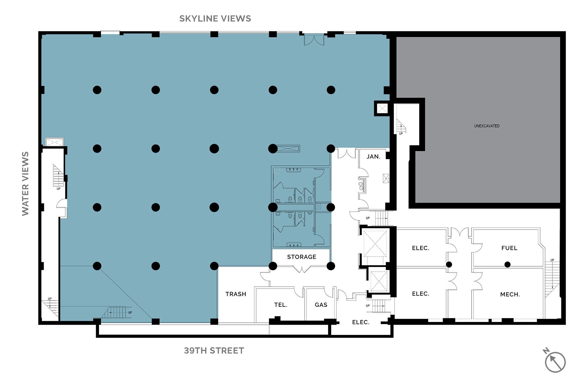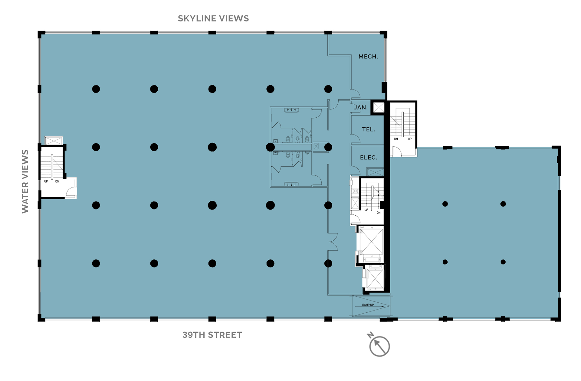 | 120/208V service with 12 W/SF available at all floors, submetered |